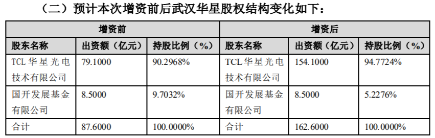 TCL 科技:对武汉华星增资,投资第 6 代半导体新型显示器件生产线扩产项目