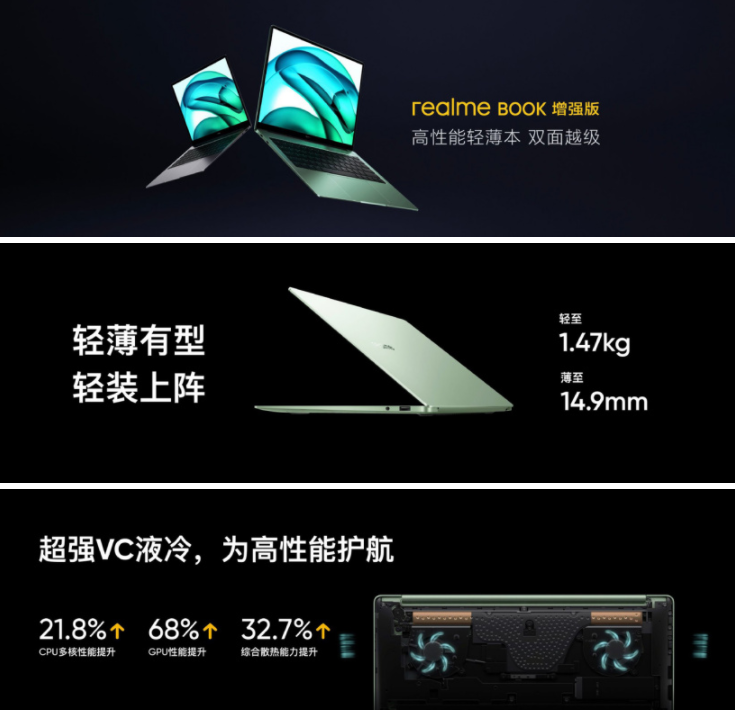 1 月 4 日晚,realme Book 增强版笔记本发布,搭载了英特尔 i5-11320H 处理器,首销 4699 元起。
